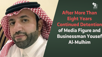 Al-Muhaimid faced numerous serious violations in prison, including physical torture and solitary confinement for 80 days. He was also beaten by 15 soldiers for requesting a lawyer.