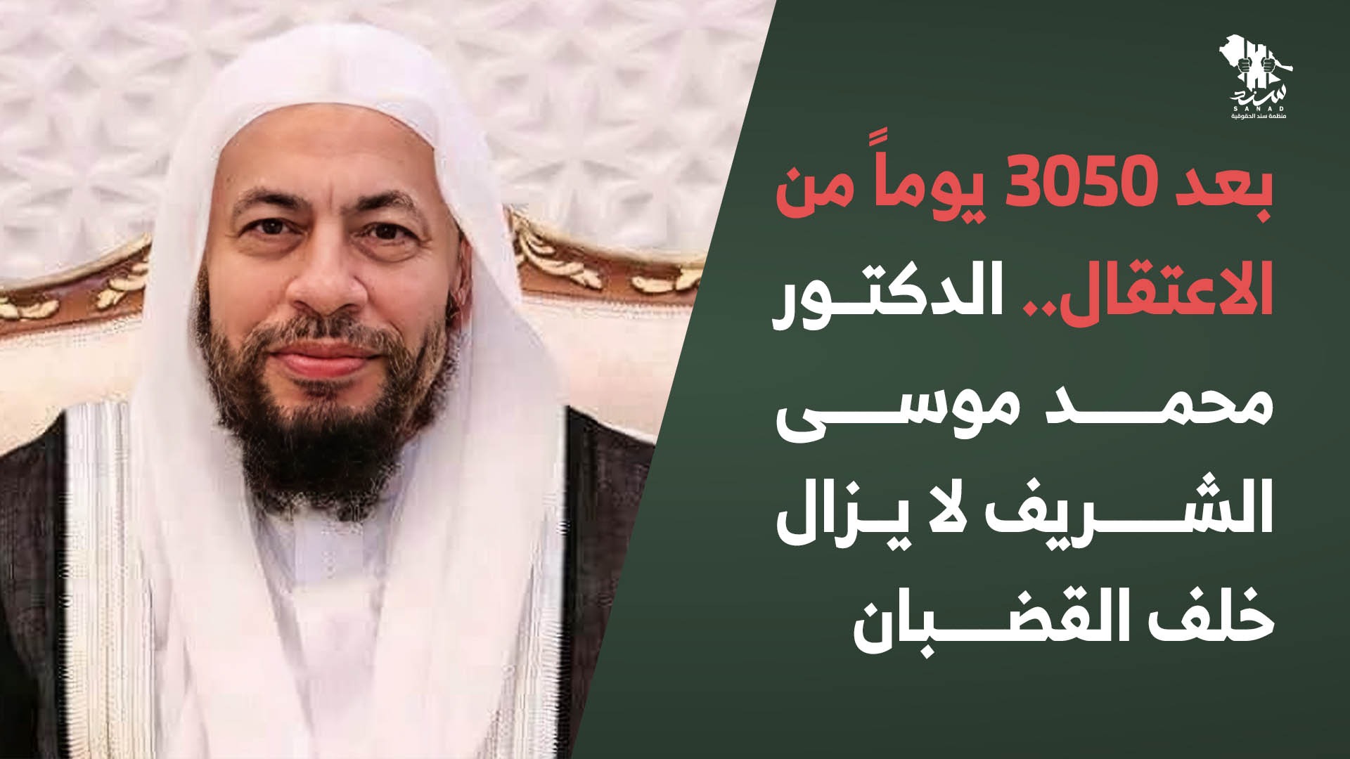 أتمّ الدكتور محمد موسى الشريف 3050 يوماً رهن الاعتقال في السجون السعودية، منذ اعتقاله في سبتمبر/أيلول 2017، ضمن حملة شملت مؤثرين ومفكرين ونشطاء، حيث يقضي حكماً تعسفياً بالسجن لمدة عشر سنوات.
