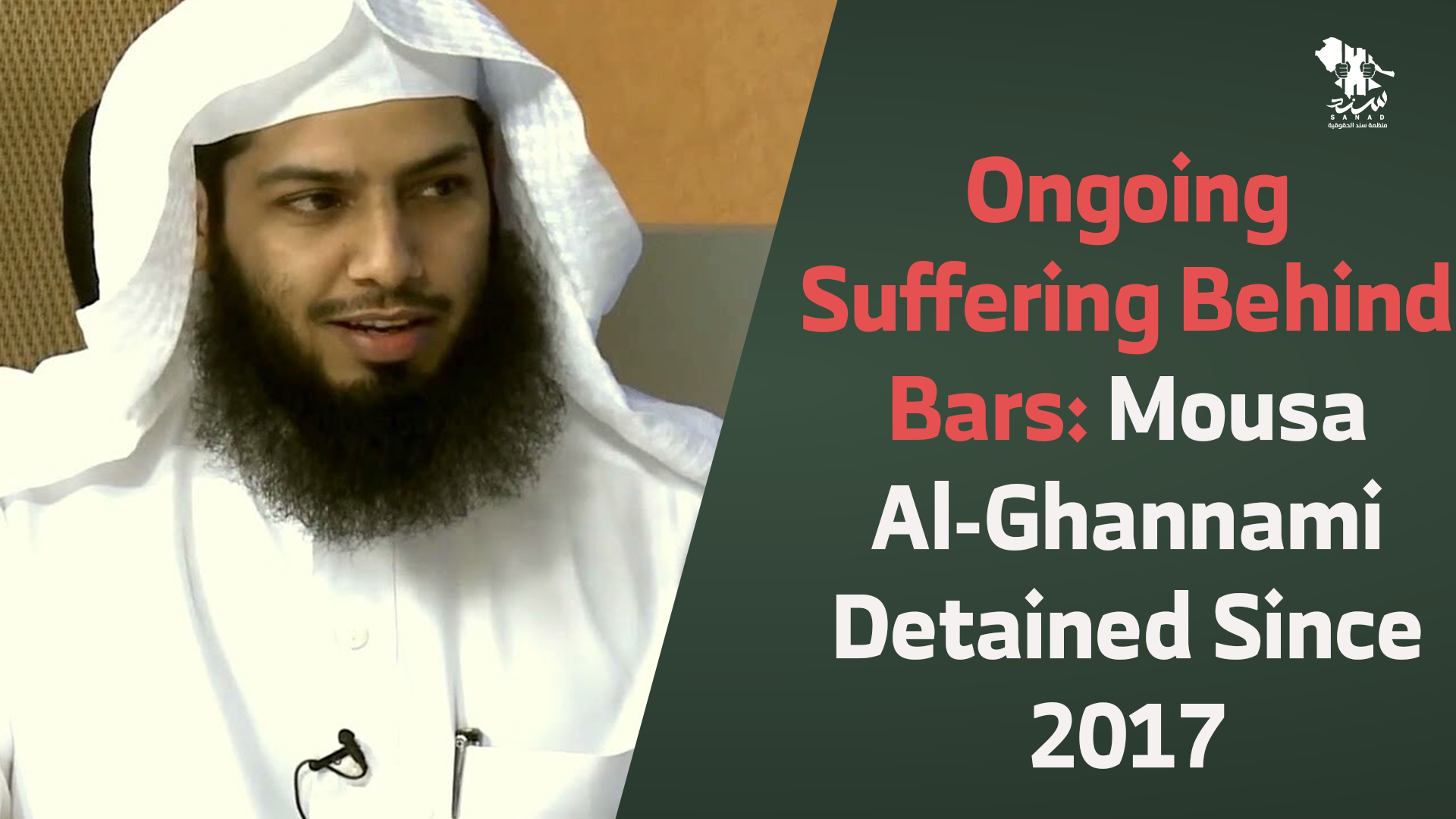 SANAD Human Rights Organization renews its call on the Saudi authorities to release Mousa Al-Ghannami immediately and unconditionally, provide compensation for his years of arbitrary detention and related abuses, and free all prisoners of conscience while ending ongoing policies of repression that threaten the rights of citizens and residents in Saudi Arabia.
